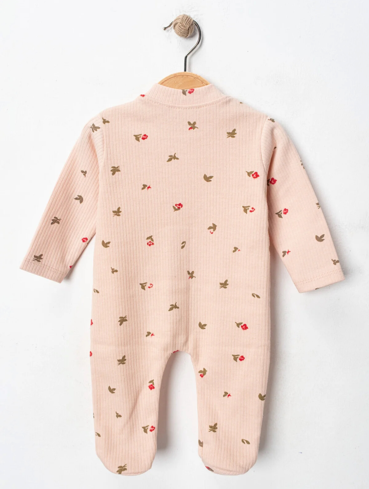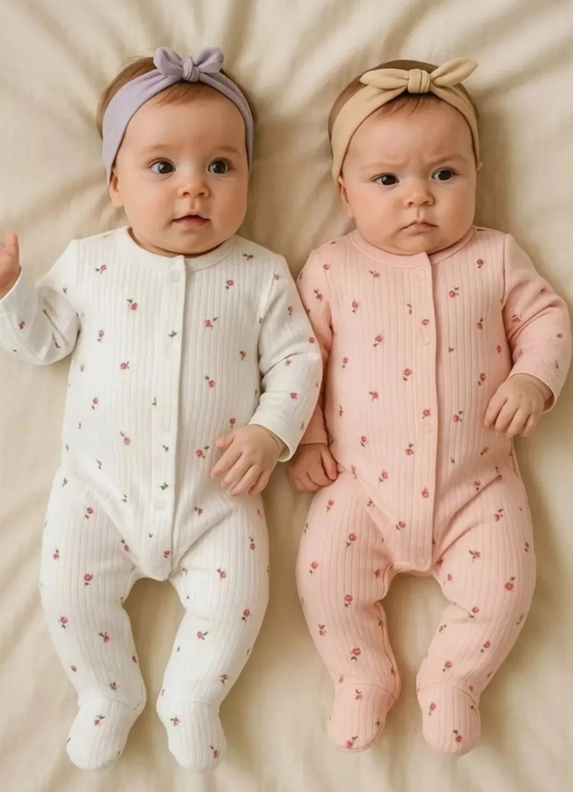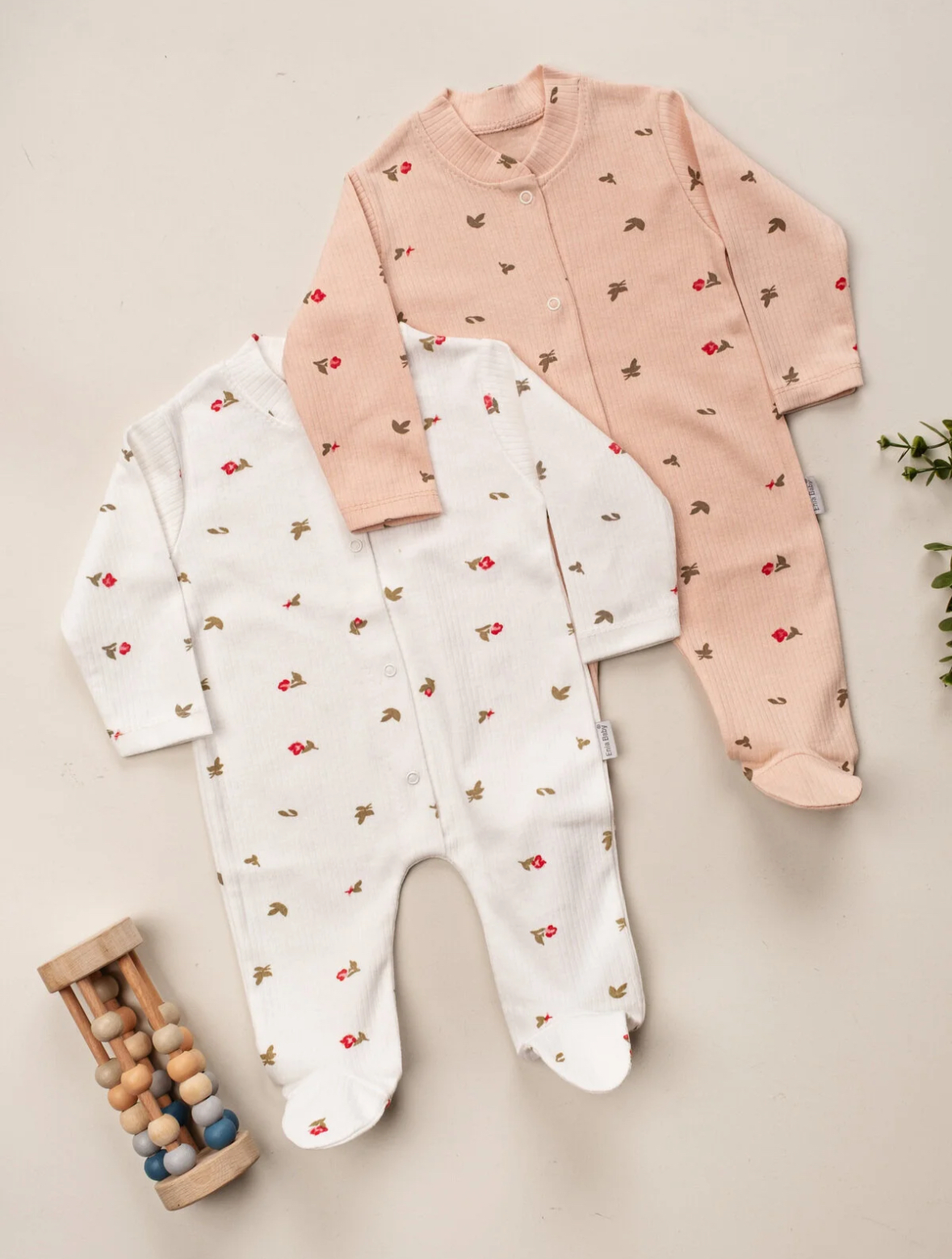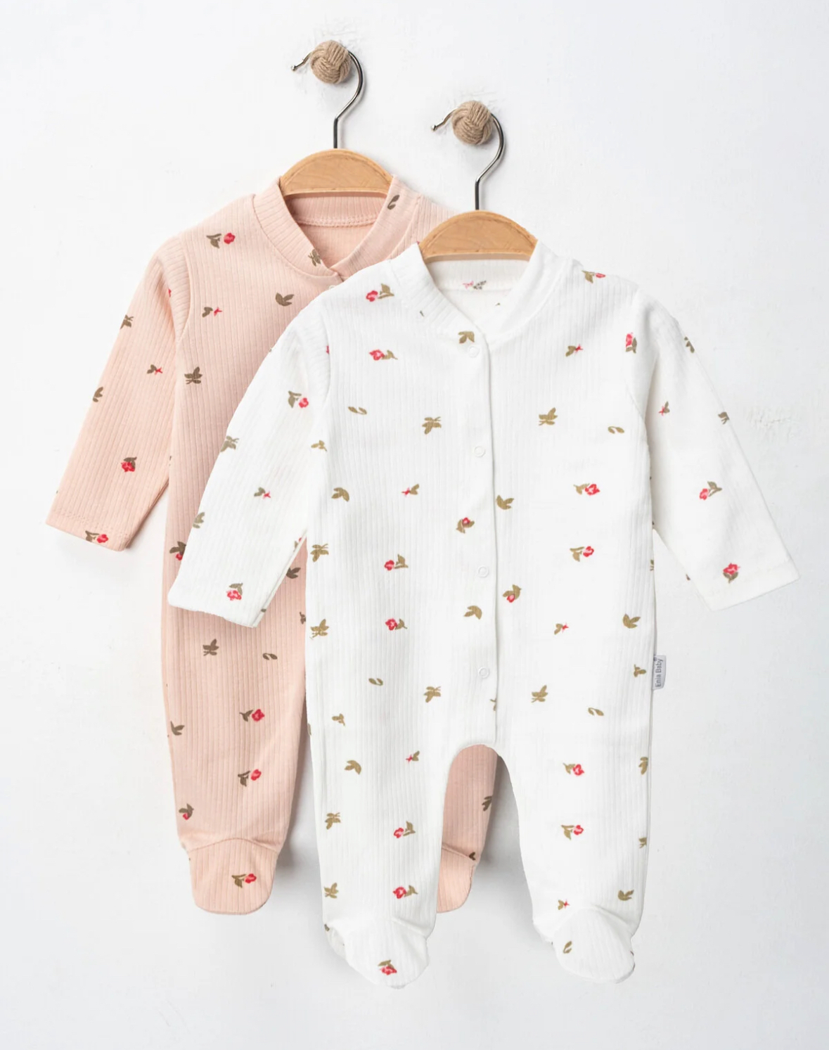 ست ۲ تکه لباس نوزاد دختر ارگانیک با طرح گل، مناسب نوزادان ۱–۳–۶ ماه، از جنس پنبه نرم