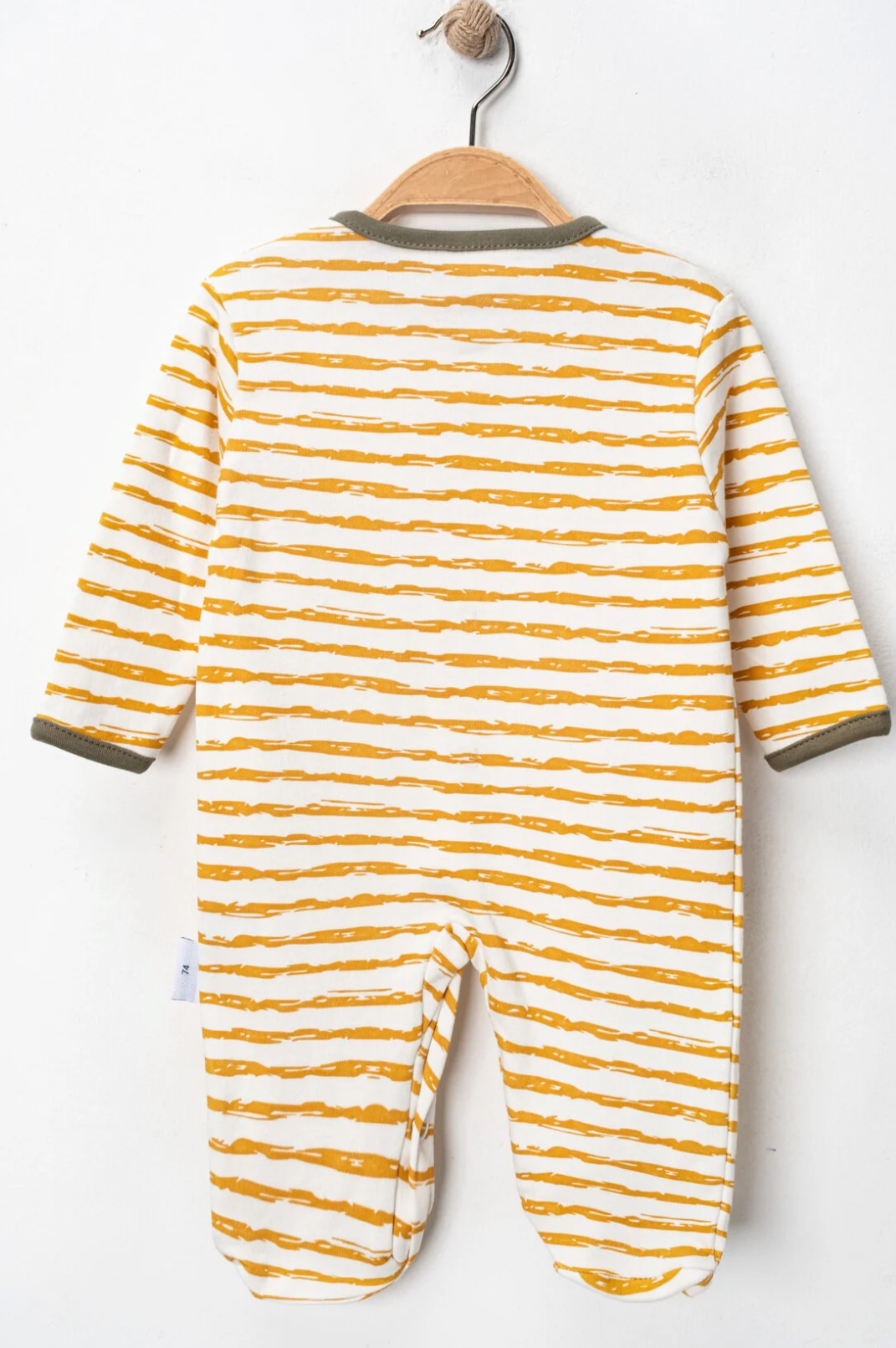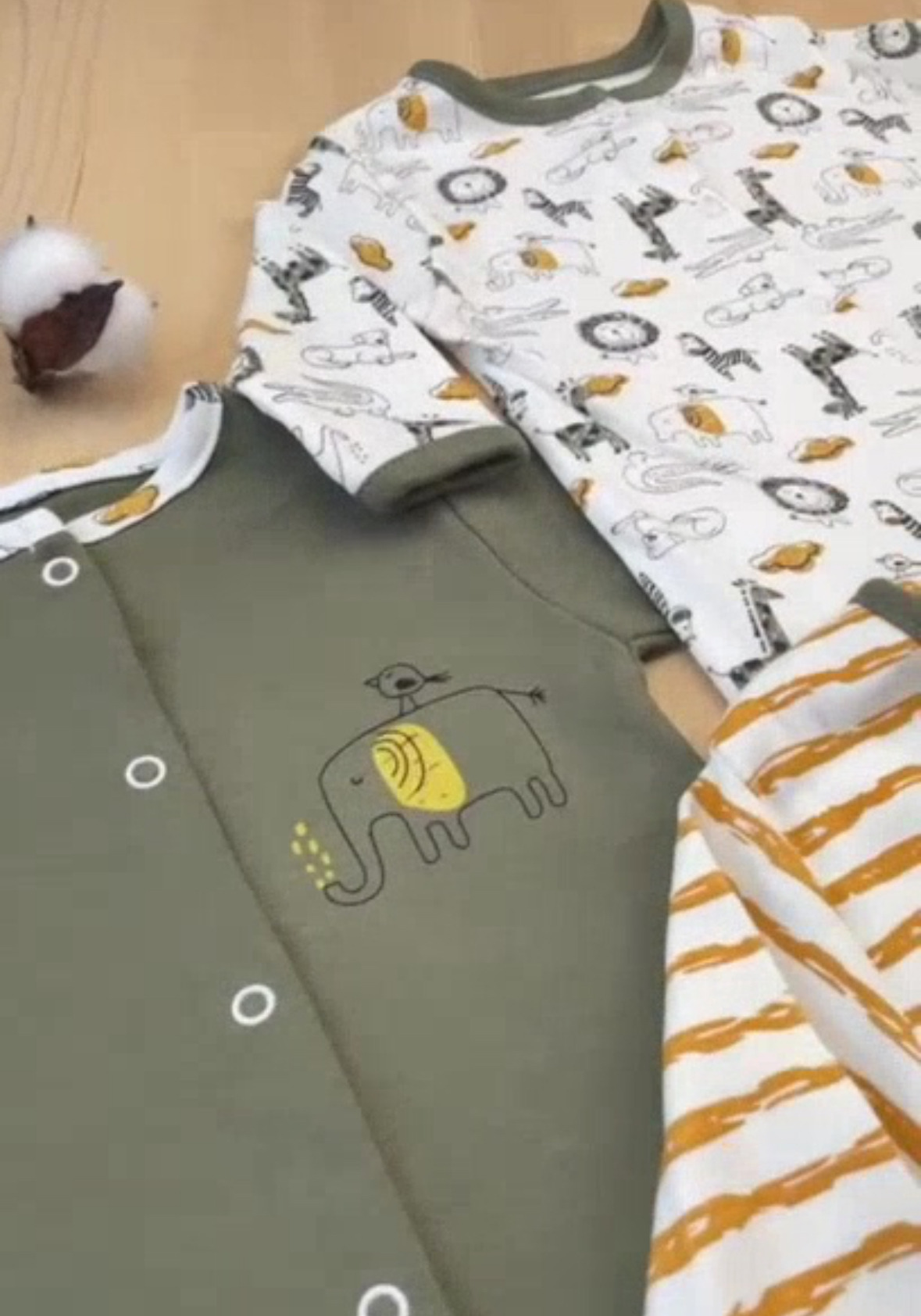 «لباس نوزاد پسر ۳–۶–۹ ماهه، ۱۰۰٪ پنبه، طرح سافاری، دارای پاپوش