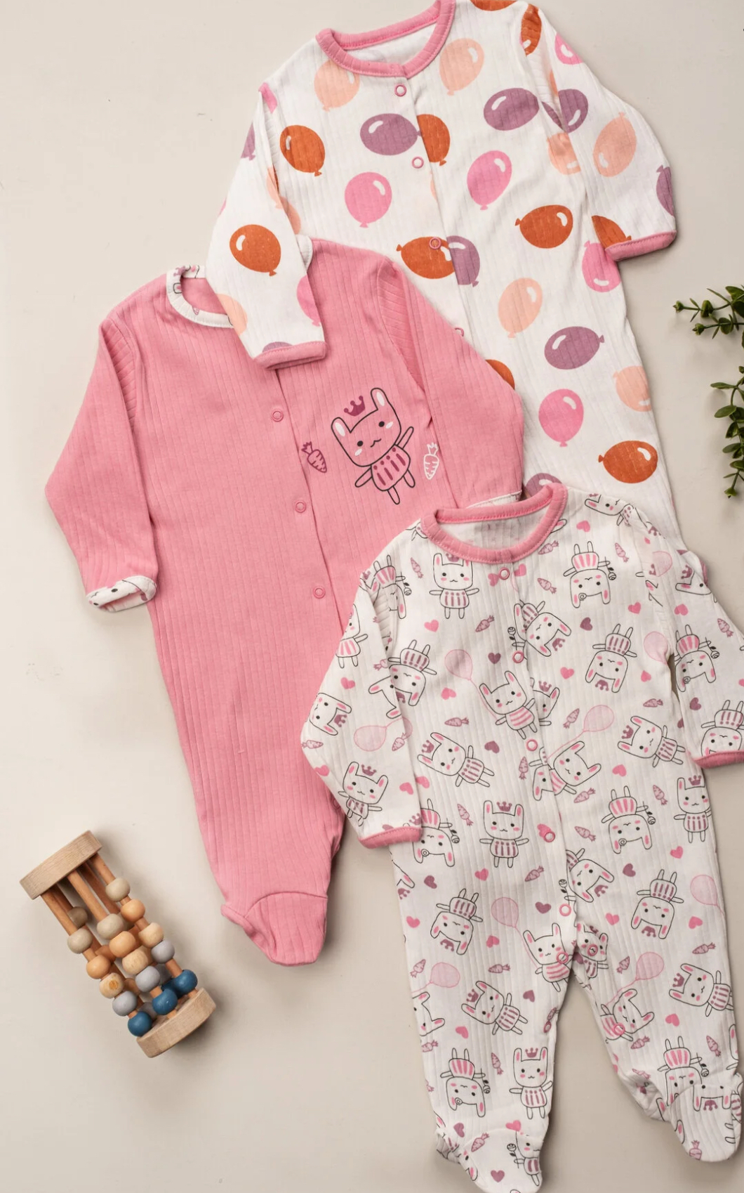 «ست ۳ تکه لباس نوزاد دختر ۳–۶–۹ ماهه، ۱۰۰٪ پنبه، طرحدار و دارای پاپوش، رنگی و با طرحهای متنوع