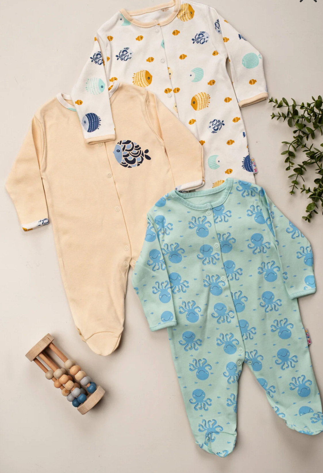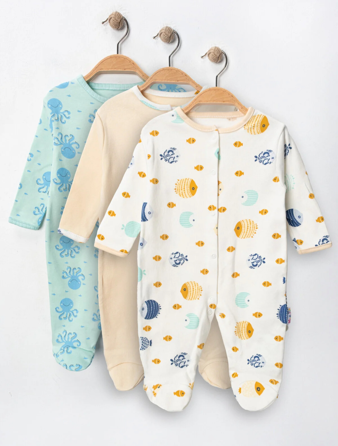 «لباس نوزاد دختر، رومپر ۳ تکه، پنبهای و طرحدار، دارای پاپوش، رنگی و با طرحهای متنوع، مناسب نوزاد تازه متولد شده