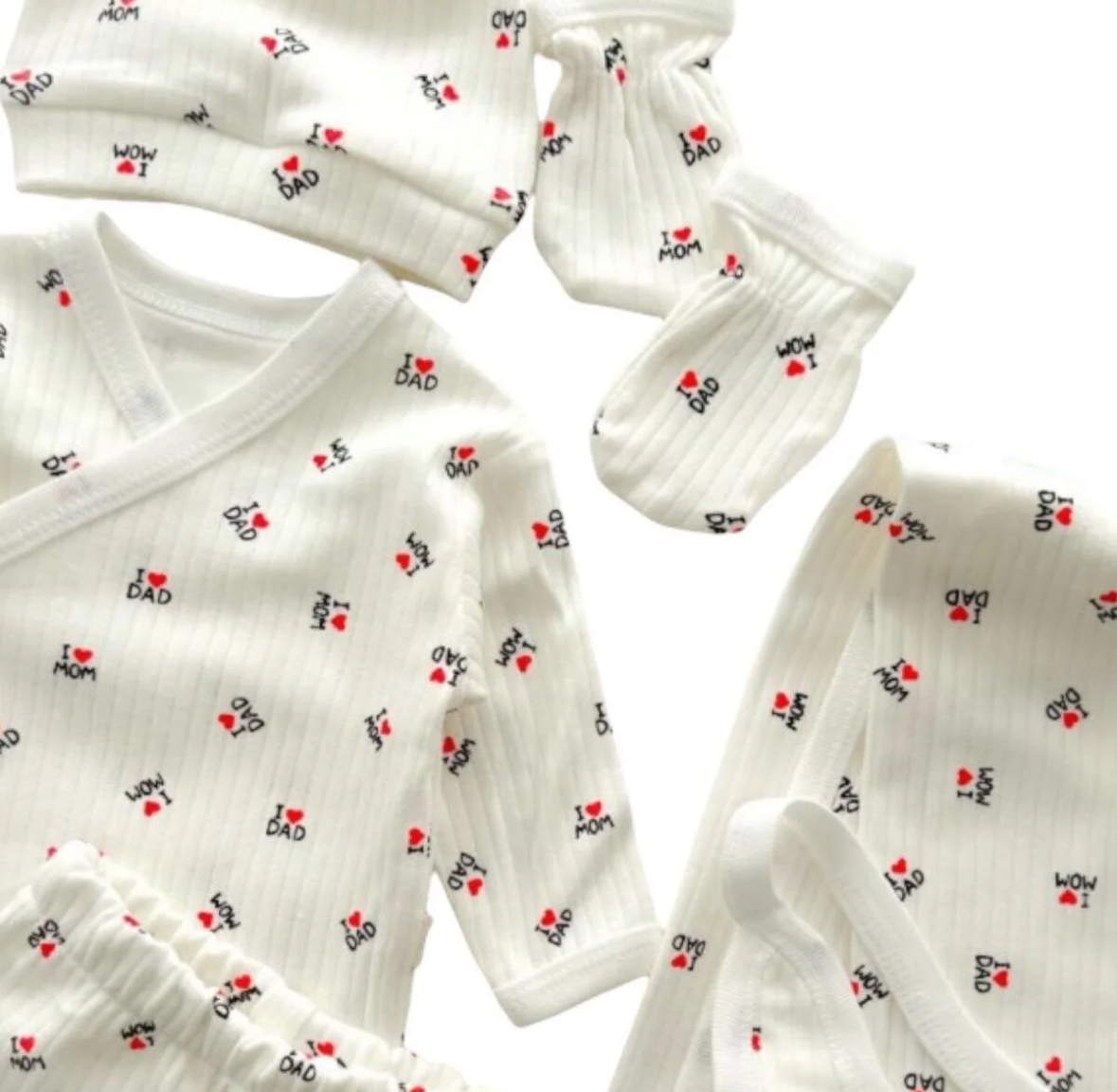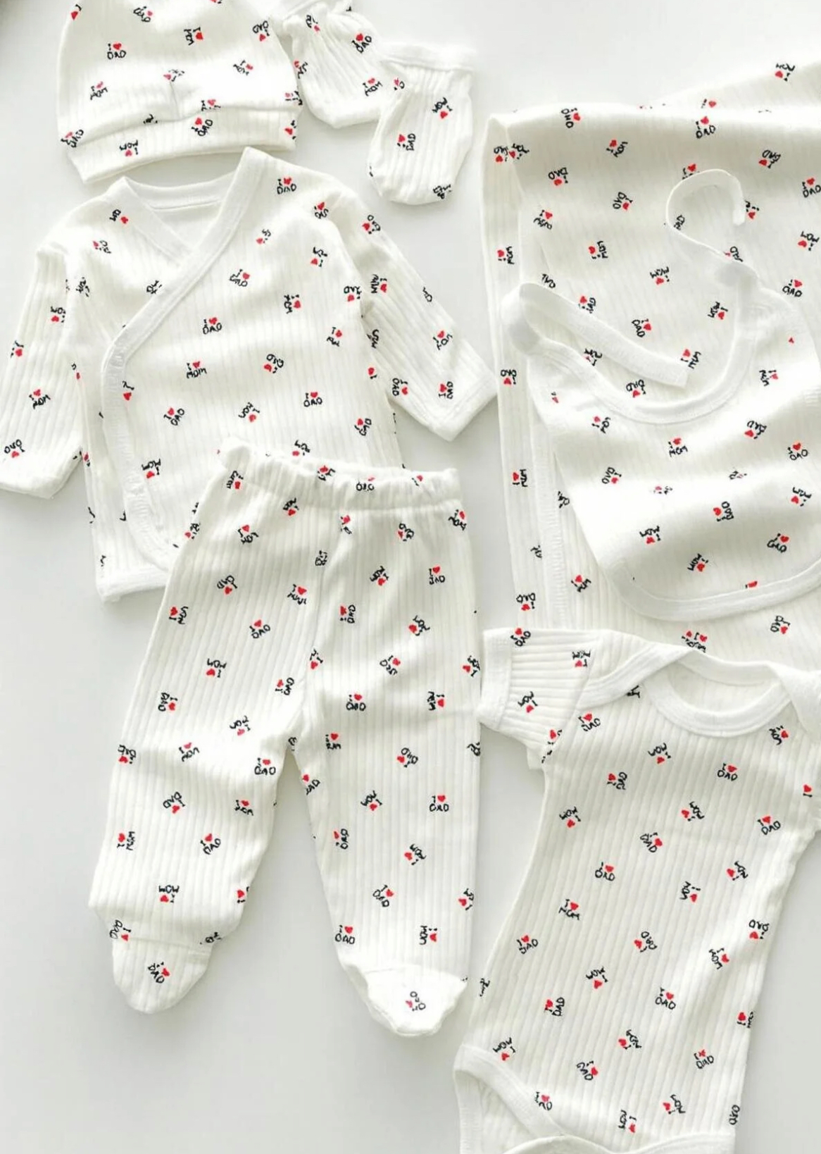 «ست ۷ تکه خروج از بیمارستان نوزاد (دختر/پسر) برند BYS BABY FASHION — ساختهشده از پنبهٔ ارگانیک.