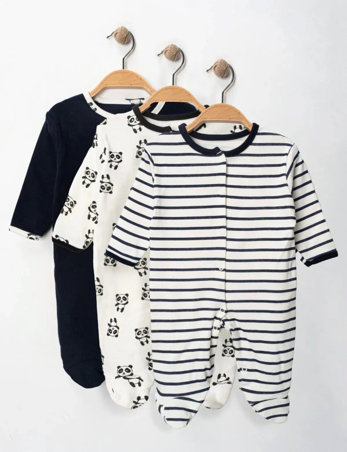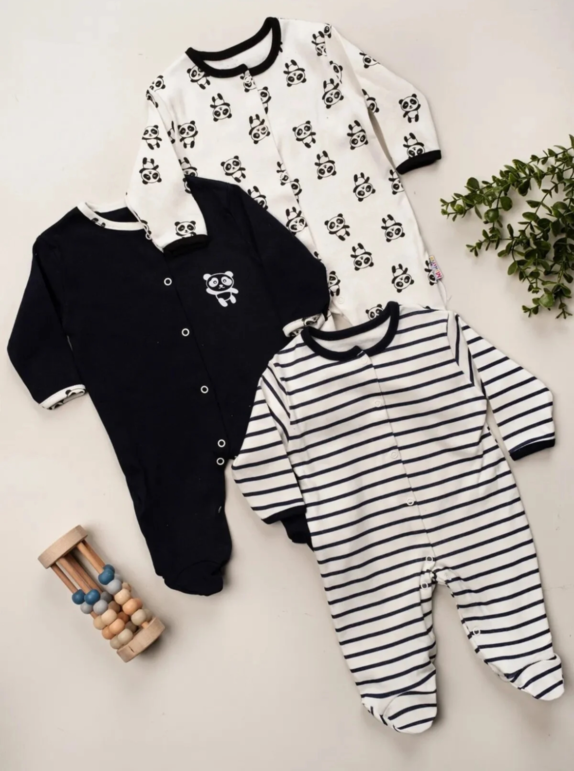 «ست ۳ تکهای سرهمی نوزاد دختر/پسر برند ENİA BABY — طرح پاندا، مناسب نوزاد تازهمتولد، سایزهای ۳–۶–۹ ماه.