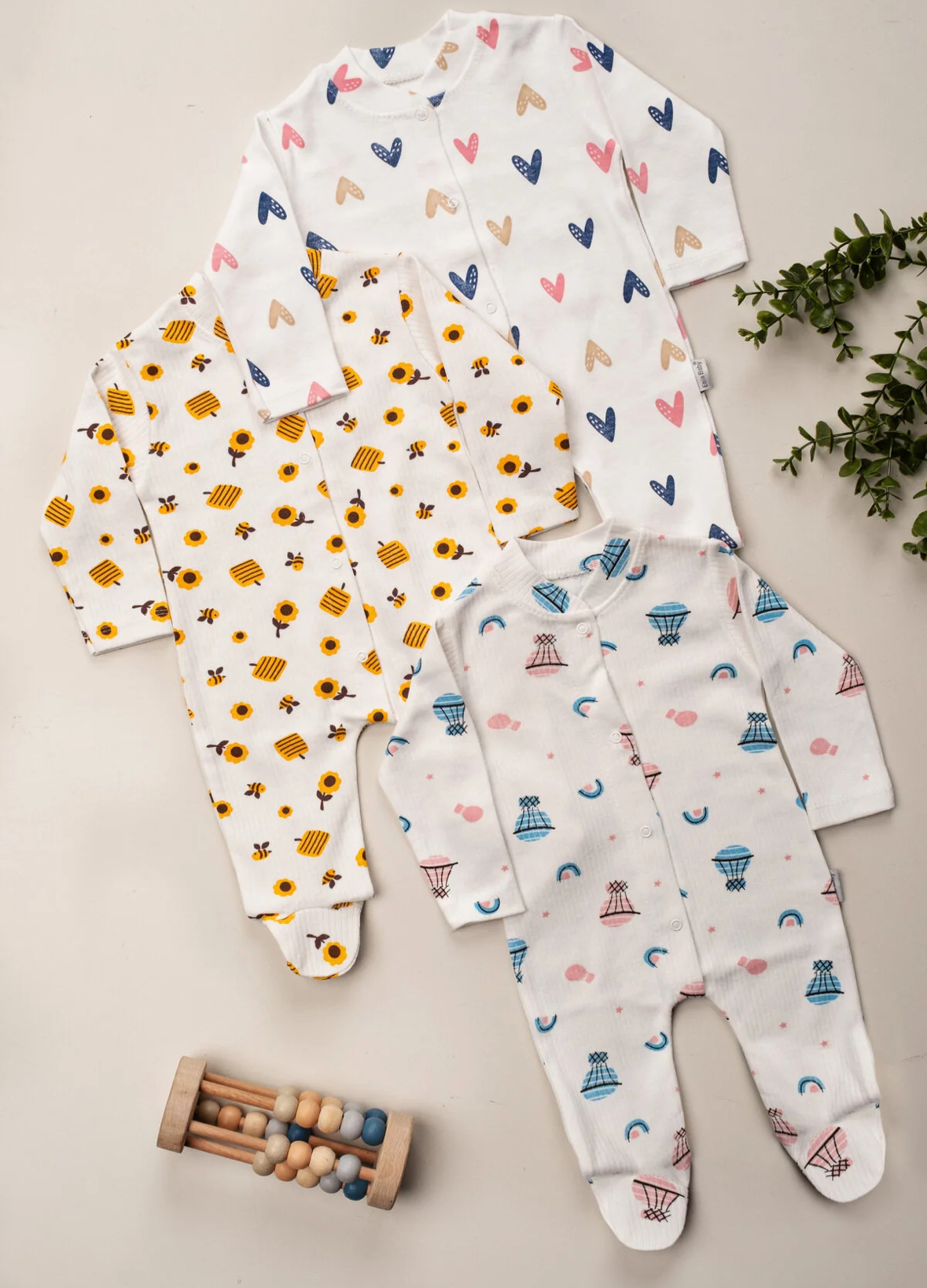 ست ۳تکهٔ رنگی و طرحدار سرهمی نوزاد دختر/پسر، سایز ۰-۳ ماه